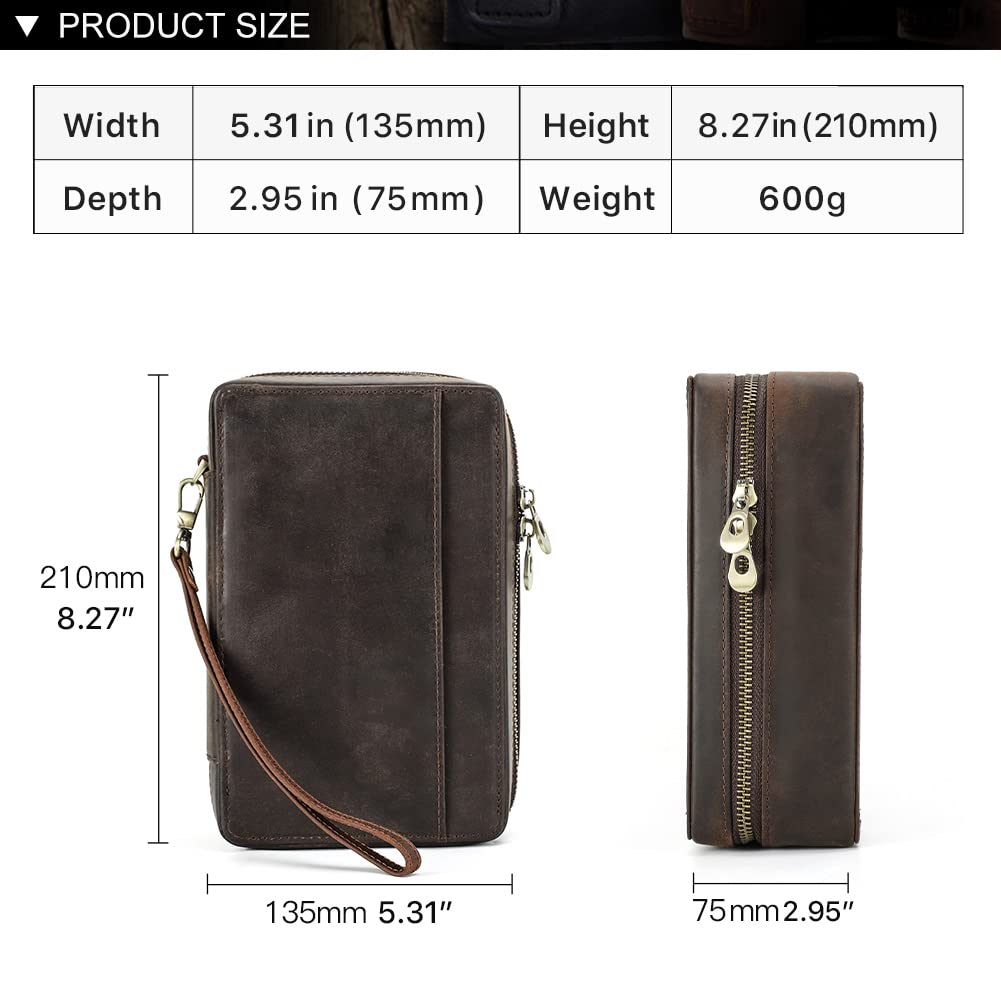 - CIGAR CLUTCH BAG - Brown cigar case is made of crazy horse cowhide leather with sturdy construction can effectively protect your cigar from damage. You can store your cigars and accessories you need.