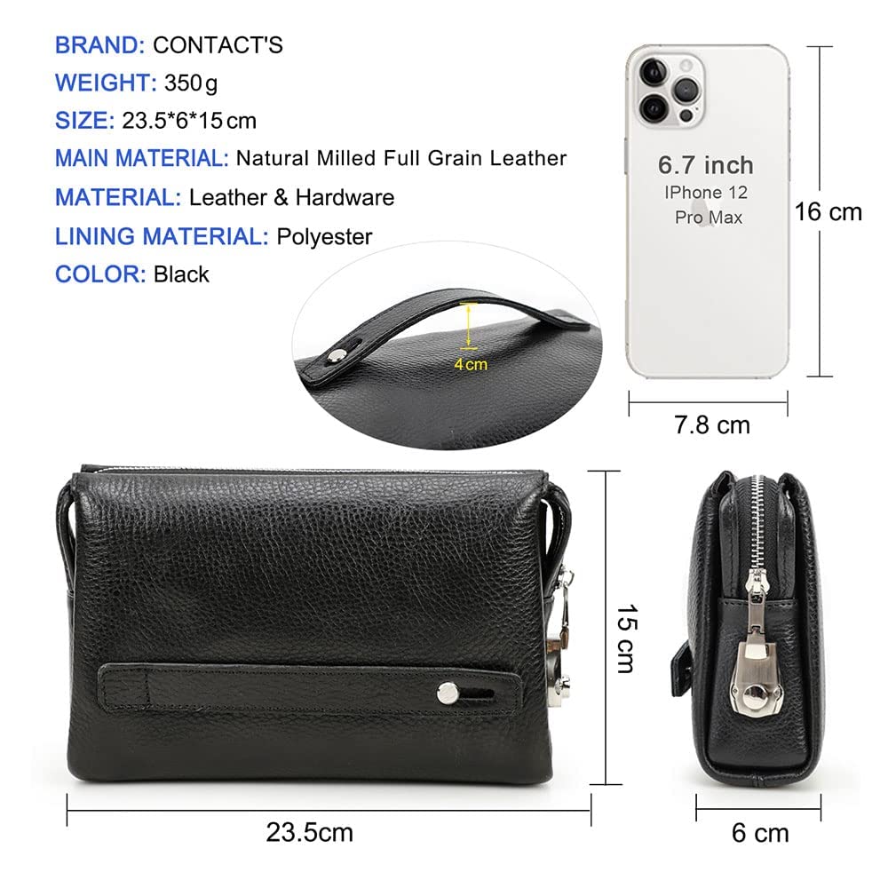 CONTACTS Clutch Purse Bag Leather for Men Anti Theft Wristlet Handbag Wallet Multiple Compartments Card Phone Holder Travel Bag