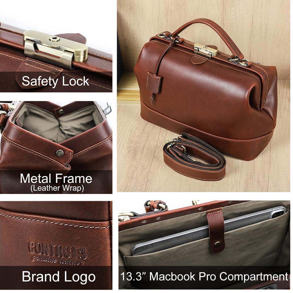 CONTACTS Doctor Bag Purse for Women Luxury Leather Handbag with Lock Shoulder Bag Vintage Top Handle Bag