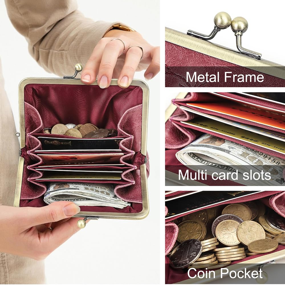 - PREMIUM LEATHER: Crafted from full grain leather, womens coin purse with kiss lock exudes timeless elegance and vintage charm while offering superior durability