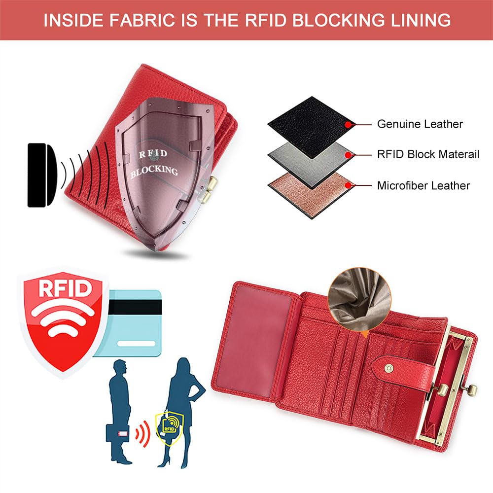 - Rfid Blocking Protection: Equipped with rfid protective lining, ladies leather kiss close purse can block electronic signals to keep your data, personal information and identity secure while you're go out