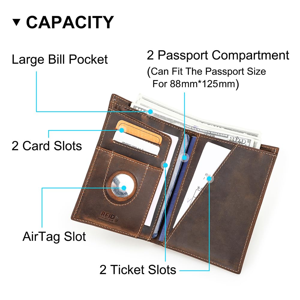 - Compatible with AirTag: Keep track of genuine leather lightweight and slim anti-lost bifold wallet passport purse for men effortlessly with a slot for smart tracker (not included)