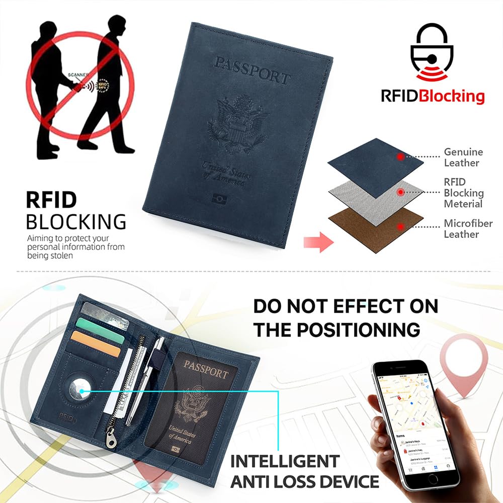 - Compatible with Airtag Passport Holder: Keep track of genuine leather lightweight and slim bifold wallet passport purse for men effortlessly with a slot for a smart tracker (not included)