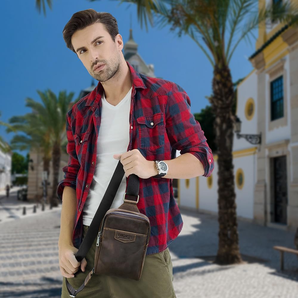 CONTACTS Full Grain Leather Sling Bag for Men Small Crossbody Chest Bag Casual Shoulder Daypack Travel Phone Purse Side Bag