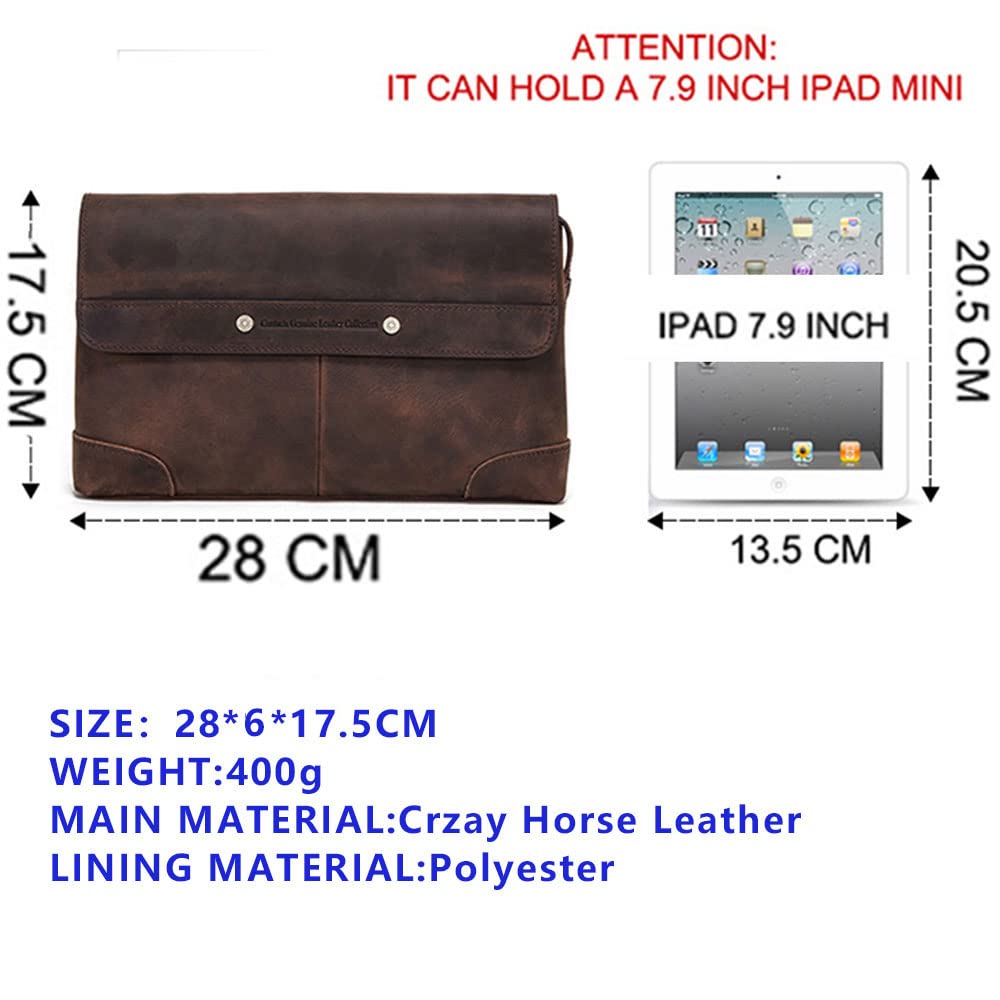 - Size: 28 x 6 x 17.5 cm. Premium leather clutch purse for men equipped with wrist strap, that is convenient to hold in hand when go to compan/work/travel/shopping.